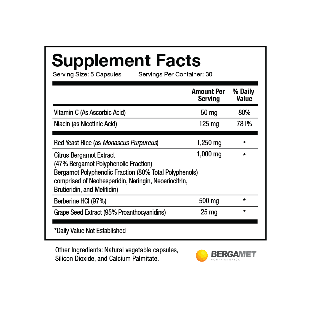 (Citrus Bergamia)(standardized to contain a minimum of 38% BPF containing Neohesperidin, Naringin, Neoeriocitrin, Brutieridin, and Melitidin)