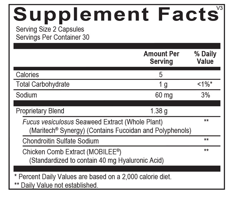 - Fucus Vesiculosis Seaweed Extract (Whole Plant) (Maritech® Synergy) (Contains Fucoidan and Polyphenols) **