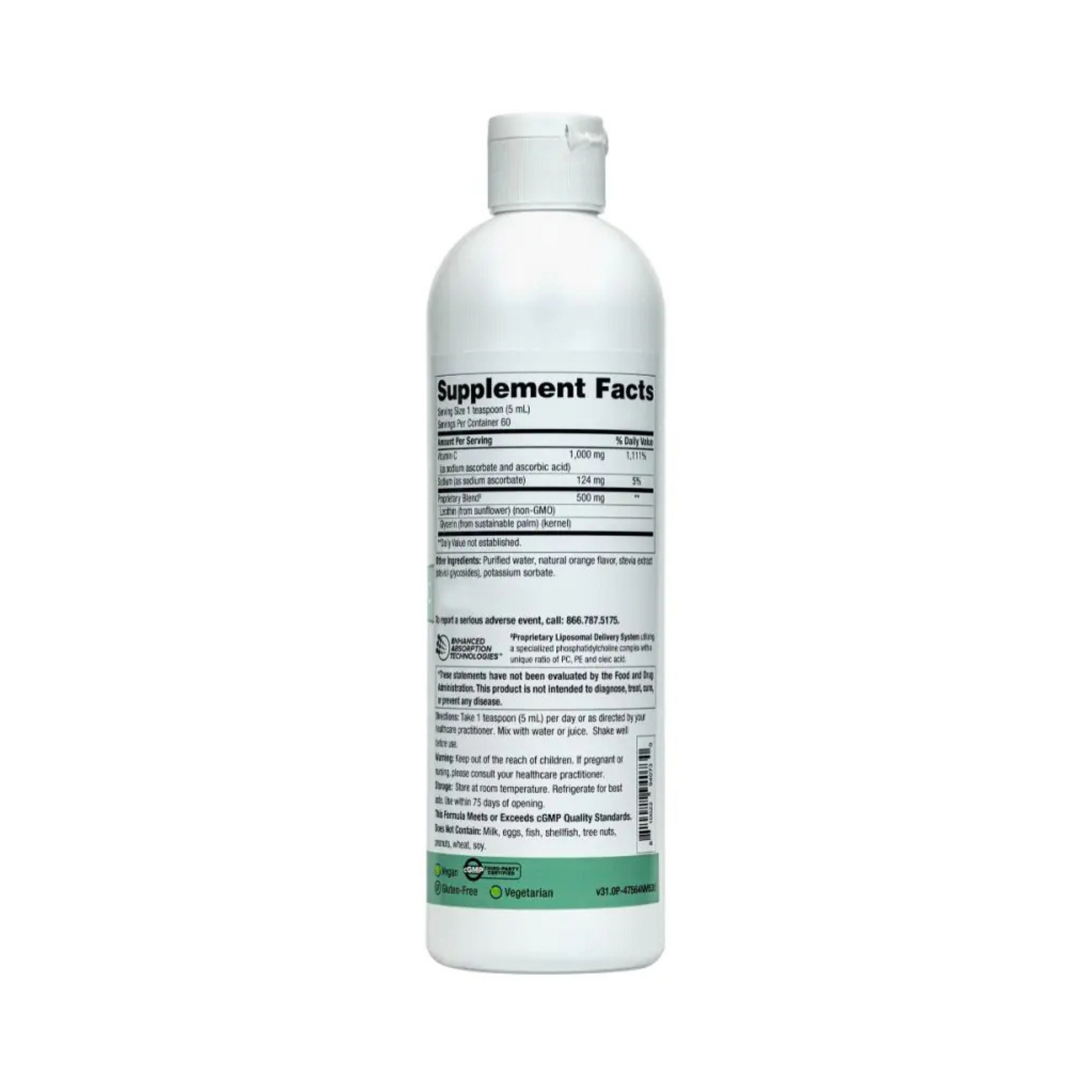 - Vitamin C (as sodium ascorbate and ascorbic acid) 1,000 mg 1,111%